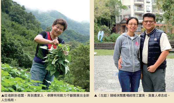 隨著農場的規模不斷擴大,兒子與媳婦們也開始接掌相關的管理營運,農場部分由卓志成與江富美夫婦傳承卓媽媽的理念,一起將頭城休閒農場打造成生產、生活、生態三生一體的旅遊天堂,更從早期的5間客房現在已經可以容納500位旅客住宿,一年能吸引6萬人次到訪。