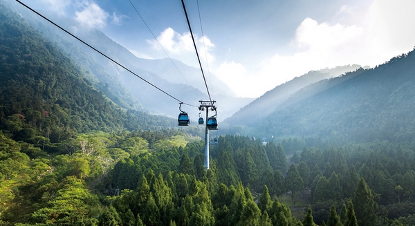 隨著日月潭纜車的登場,讓日月潭成為海陸空皆宜的旅遊勝地,這個連結了日月潭的伊達邵和九族文化村的空中橋梁,全長1877公尺,設有86個車廂,色分紅、黃、藍、綠,能夠在10分鐘的空中旅程中看遍日月潭湖光山色、地理景觀和水文,還有四季的晴雨煙雲。其中綠色車廂是地板透明的水晶車廂,適合喜歡刺激的遊客,感受離地142公尺上空腳底微微發麻的搭乘經驗。