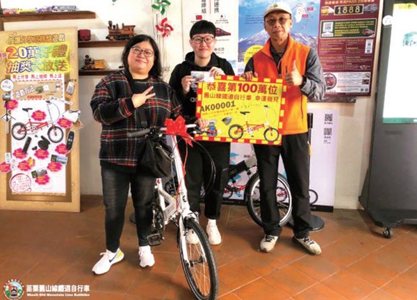 舊山線鐵道自行車2019年7月營運以來,雖然期間受到新冠肺炎的影響,搭乘人次縮減,但憑藉著員工的共同努力,在今年2╱20迎來第100萬位舊山線鐵道自行車幸運寵兒,持續替苗栗觀光帶來人潮與錢潮!舊山線鐵道自行車也於農曆春節前夕舉辦總金額20萬元好禮抽獎大放送活動,首獎價值1萬8千8百元伸縮高級自行車及戶外運動好禮、小米運動手環旅行遙控自拍架、小米耳機,還有免費體驗券大放送,只要持票根即可現場轉盤抽獎拿大獎!