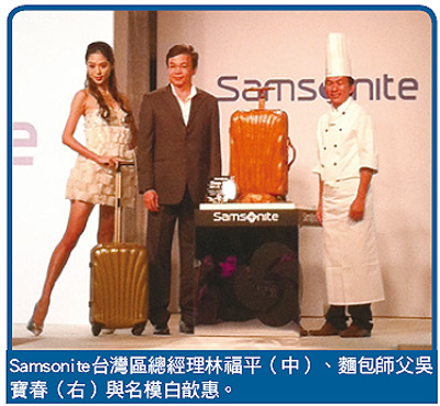為響應Step Out的理念,2010年法國巴黎首屆世界盃麵包大師賽歐式麵包組的世界冠軍吳寶春師傅挑戰自我,特別重新學習藝術麵包的工法,打造全球第一個原寸的金色 Cosmolite麵包行李箱,現場展示時吸引了所有人的目光,吳寶春師傅也將20多年努力不懈的精彩人生分享給與會貴賓,吳寶春說:「造型麵包是非常專業的領域,我因為要體現Step Out,挑戰自我,所以大膽作了這個嘗試,目的就是透過這個造型麵包告訴所有人,即使是麵包世界的冠軍,也需要再次挑戰自己,大步向前!」該世界唯一的行李箱造型麵包,將於Samsonite的店櫃做現場展示,以饗國人!
