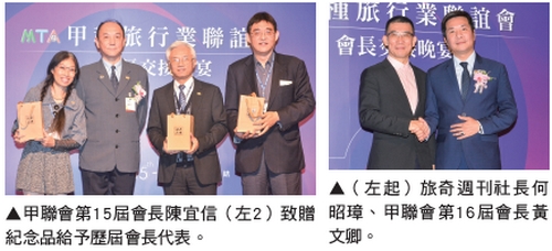 ▲甲聯會新任會長交接,包括海旅會、觀光局、航港局,以及各國旅遊局、航空公司、各地公協會代表皆熱情參與。