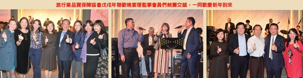 為了感謝理監事長期以來的支持與協助,旅行業品質保障協會(簡稱品保協會)特別於1╱4假晶宴會館舉辦「旅行業品質保障協會戊戌年聯歡晚宴」,並於晚會前召開理監事大會。席間包括觀光局、海旅會、海基會,以及各大航空公司、公協會代表、外國駐台觀光局等蒞臨,一同歡慶2019年的到來。