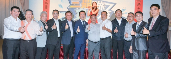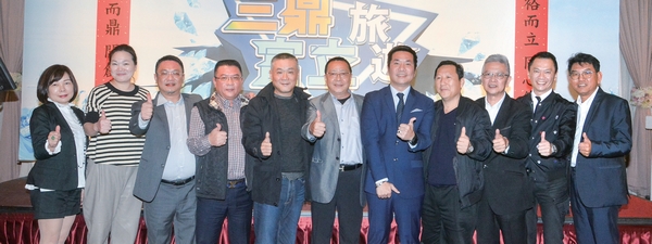 ▲(左3起)三鼎旅行社董事長林攸浩、中華觀光精品產業協會理事長吳建忠、(左6起)旅行公會總會榮譽理事長曾盛海、富立旅行社總經理黃文卿、旅行公會總會榮譽理事長許禓哲(右3)與嘉賓合影。