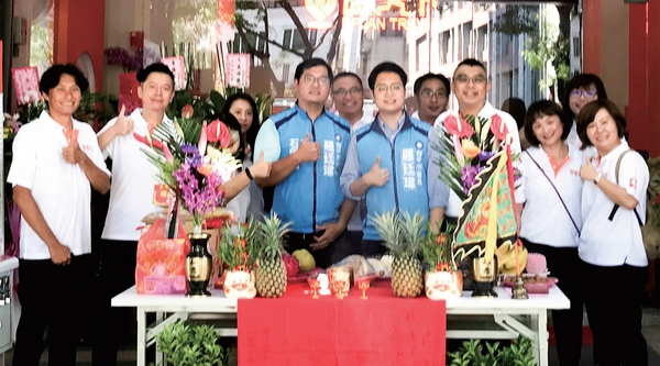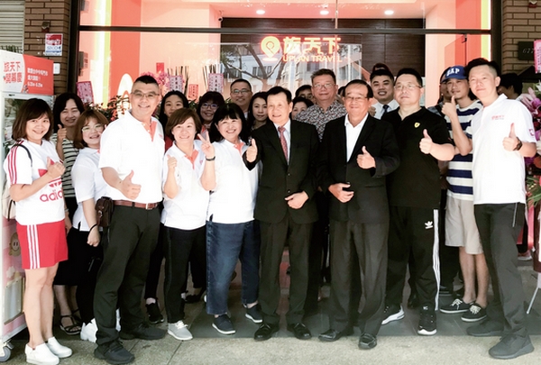 ▲(前排左2)旅天下台中中科加盟店總經理楊仁和、(左4)台中市議員羅廷瑋和(左5)旅天下台中中科加盟店總經理沈其憲。