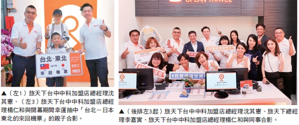 ▲(前排左1)旅天下台中中科加盟店總經理沈其憲、(右1) 旅天下台中中科加盟店總經理楊仁和、(前排左4)台中市旅行商業同業公會理事長張進丁。