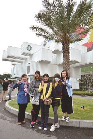 ▲東南旅遊員工於花蓮貨櫃屋星巴克合影。