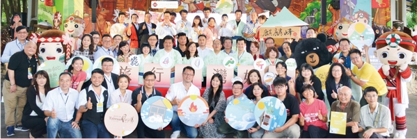▲(左起)交通部觀光局北海岸及觀音山國家風景區管理處副處長金玉珍、溫泉觀光協會理事長李吉田、交通部觀光局國旅組組長莊靜真、南投縣政府觀光處長陳志賢、台灣旅行業國民旅遊發展協會理事長賴俊傑、南投縣地方產業群聚發展協會發起人朱怡甄。