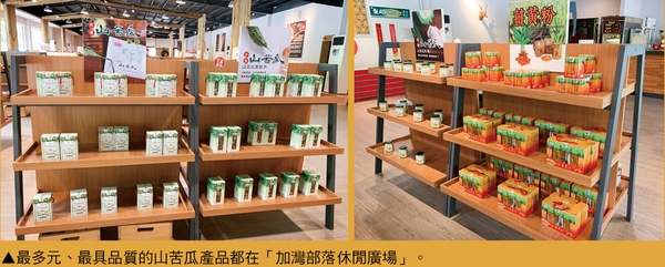 張蕾表示,「加灣部落休閒廣場」特別引進「花蓮二號山苦瓜果茶」、「花蓮二號山苦瓜果粉」、「花蓮二號山苦瓜乾片」等,讓民眾能購買到最安心且最具功效的山苦瓜系列商品,好好消暑一番。