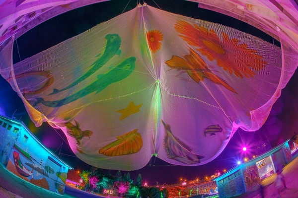 曾獲頒總統教育獎的鄭美珠老師,其畫作色彩鮮明,結合立體形式的裝置藝術,佐以光雕律動,澎湖的人文、藝術風情都能在虛實夢幻的佈置中呈現,無論是白天或是夜間都能創造出不同的迷人視覺。