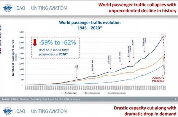 ▲新冠病毒是本世紀最嚴重影響全球旅運量的因素,造成雪崩式遽減。