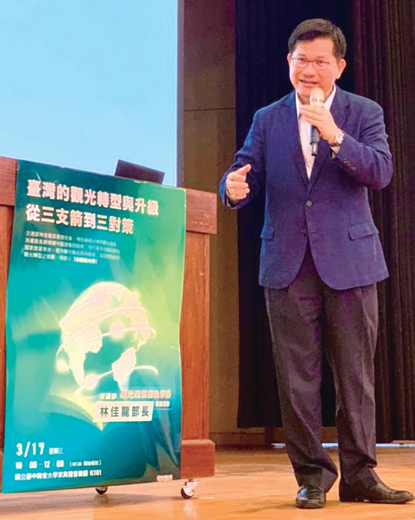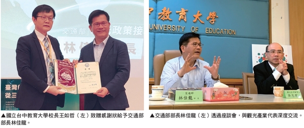 交通部部長林佳龍於3/18特別前往國立台中教育大學與談台灣的觀光轉型與升級,以「從三支箭到三對策」為主題,對現場來自全台30多所大學校院觀光相關科系的師生、中部地區的觀光局處首長、及交通部觀光局國家風景區管理處處長們等170多人,進行觀光政策接軌學術的專題演講,堪稱觀光學術界的一大盛事。