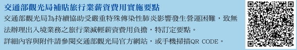 在全聯會的多次溝通下,主管機關交通部觀光局將旅遊業的紓困振興3.0無縫接軌的延至2021年6月,其中今年第1、2季,每季約估6.9億的薪資補貼等相對應的政策,根據全聯會3/31向觀光局局長張錫聰詢問,此案確定已由行政院核批,目前第1季款項已撥下至交通部,第2季持續規劃中,暫無經費不足的狀況。