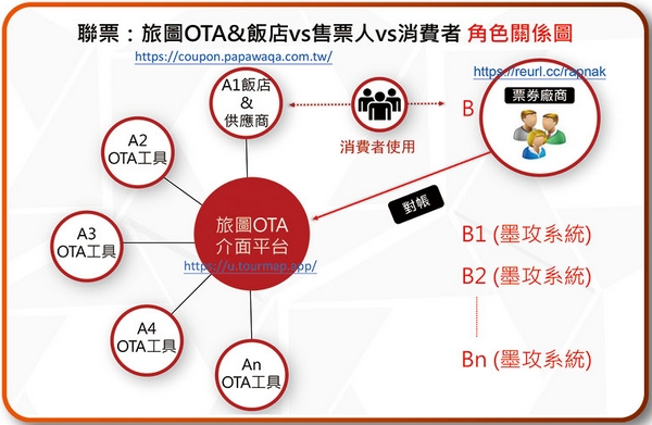 為了讓消費者擁有更多選擇,而業者也能在其中獲得應有利益的最大化,泰安觀止董事長江德利與墨攻合作推出「旅圖OTA數位系統」B2B專區。由於運用數位整合串接跨域觀光產業(票商、旅行社、散客、通路商),讓希望合作的旅行同業可以免費註冊、取得專屬代碼、自訂優惠折扣,以銷售「優惠聯票」或「U代幣」,提供消費者購買使用,兌換飯店房間或是飯店套裝行程,不僅飯店業者不用跳樓拍賣,旅行同業也能獲得定額退佣,消費者則用最優惠花費,享受最超值服務,達到旅宿業、旅行社、消費者三方共贏的局面。