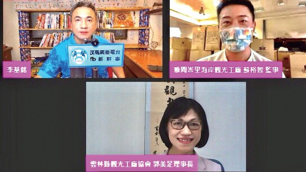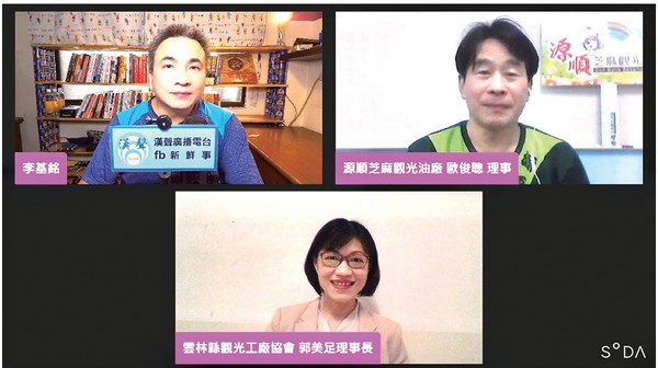 ▲雅聞峇里海岸觀光工廠╱協會監事蘇裕智(右上)與雲林縣觀光工廠協會理事長郭美足(下),接受漢聲廣播電台《FB新鮮事》訪談。