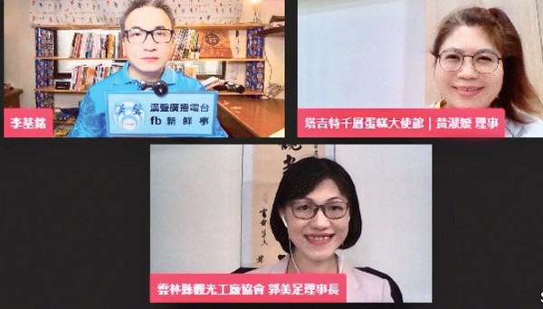 ▲塔吉特千層蛋糕大使館╱協會理事黃淑媛(右上)與雲林縣觀光工廠協會理事長郭美足(下),接受漢聲廣播電台《FB新鮮事》訪談。