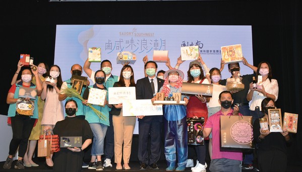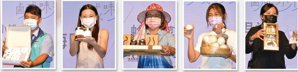 記者會中更邀請本次選物 計畫業者進行「鹹良好物」 創意走秀,包括廣受民眾喜愛台南「佛都愛 玉伴手禮盒」、老饕最推薦的「長盈海味屋 特色蒜味胡椒鹽」、備受歡迎的「海中央小 舖火燒蝦蛋捲伴手禮」、以及來自安平的新 包裝「得意蝦餅」;嘉義的超人氣「明木滿 月油飯禮盒」、好美農漁產的「蛤蜊娘 XO 醬」,雲林60年老店的「祥美餅舖」,紅遍 國際的第一鰻波工坊「胭脂鰻」、好蝦冏男社「乾燥蝦」、最佳下午茶甜點的「杰樂蕃 薯園黃金地瓜片」,都是鎂光燈下的焦點。
