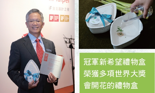 榮獲德國iF產品設計獎、德國紅點大獎、義大利A’design金獎、英國 Pentawards獎、台灣食創獎等多項個國際國內大獎的新希望禮物盒, 其造型是取自臻品植萃品牌標誌「花苞與葉形複合體」,全材質採 用100%回收紙與薰衣草草籽混合紙漿做成的禮物盒,底部「Water Me」位置、有多種可選擇的種子紙片,只要澆水、移入土壤,就能 長出您希望的植物,使用完的禮盒則能全部自然分解回歸土地,愛地 球也同時做環保概念。