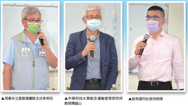 ▲(左起)旅奇週刊社長何昭璋、中華科技大學航空運輸管理研究 所教授陳盛山、台灣六堆觀光產業發展協會理事長吳文豪。