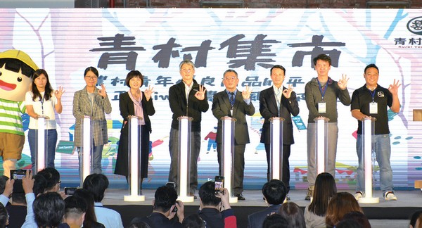 ▲(左3起)可樂旅遊董事總經理謝雲苗、國立科學工藝博物館副館長吳 佩修、水保局主任秘書陳重光、雄獅集團總經理王岳聰與嘉賓們一起為青 村集市開幕。