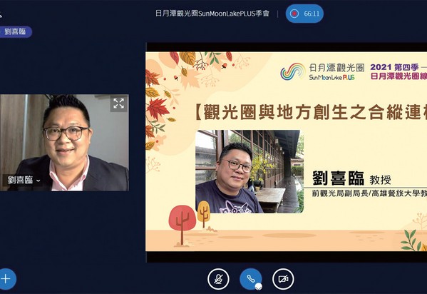 交通部觀光局日月潭國家風景區管理處、日月潭觀光圈聯盟與日月潭觀光圈推動辦公室,日前辦理「2021第4季日月潭觀光圈交流座談會」,會中除了分享近期執行項目及未來計畫,也特別邀請前交通部觀光局副局長劉喜臨分享「觀光 圈與地方創生之合縱連橫」,以及VM-Fi聲麥無線有限公司的執行長彭德新分享「日 本觀光圈AI數位轉型」,皆為聯盟成員帶 來豐富且具實務性的收穫。