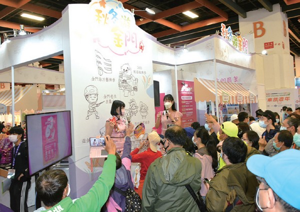 金門縣政府此次以「秋冬遊金門」主 題參加台北國際觀光博覽會,憑藉 著縣府推出的優惠,加上業者祭出多重超 值旅展好康,以及網紅的宣傳,成功讓金 門館成為旅展中最熱鬧的攤位之一。 金門縣政府觀光處副處長許績鑫表 示,金門館除了宣傳「秋冬遊金門」活動 外,也邀請到知名網紅宣傳最夯的「金門 寧境金門海洋藝術季」,加上「來金旅遊 送旅遊振興券、抽金牌」,以及「2022金 門馬拉松」,多元的活動勢必將在國旅大 爆發之際吸引旅客目光,走進金門感受在 地魅力。 許績鑫表示,過去金門業者十分仰賴 小三通遊客,尤其2019年創造193萬旅遊 人次,然而疫情讓市場急凍,也讓業者 陷入經營 危機。為 此, 金門 縣政府不 斷推出新 亮點來抓 住市場目 光, 包括 去年5月份開始前進嘉義、台中等縣市宣 傳,加上在地業者的用心耕耘,成功創造 報復性旅遊熱潮。為了刺激市場,金門更 推出如10/15的老兵召集令來抓住服役 民眾的懷舊,以及「369來金旅遊送旅遊 振興券、抽金牌」,刺激消費。此外,金 門也推出射擊、SUP立槳等年輕型體驗活 動,打破過往戰地旅遊的印象,擁抱年輕 客群。目前市場上也傳出好消息,花蓮與 金門即將於12月底開啟第一班包機,預計 再為金門的觀光旅遊打上一劑強心針。