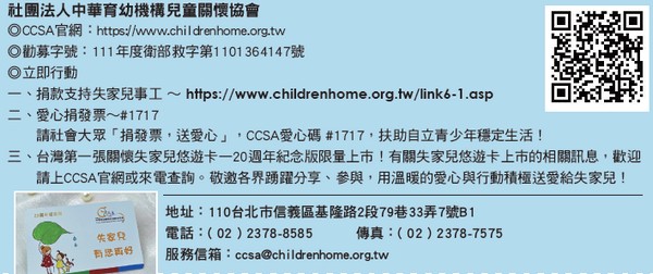 小婷早在106年就已跟社團法人中華 育幼機構兒童關懷協會(以下簡稱: CCSA)社工聯絡上,原本是市府社工轉 介,5~6年來CCSA提供包括住宿、獎助 學金、學費及心理諮商和寒暑假的輔導 陪伴等等;一路關照她從懵懂未知的少 女到如今已是科技大學幼保科的大二學 生,多年來CCSA和她早已是如家人般的 情感,比她大一些的社工也和她保持如 姊妹般的好交情。直到現在小婷還時不 時回到CCSA中區工作站,連放假期間都 還會回到宿舍裡小住,同其他自立少男 少女一樣,CCSA盡可能在生活上給予支 持;此外、CCSA運用社工專業與心理輔 導多少也填補她心靈上失去家人照顧後 的溫暖!