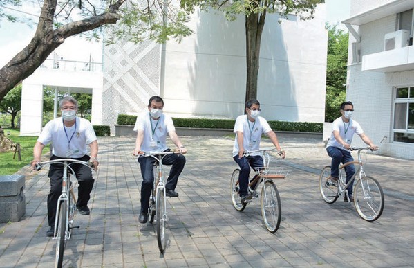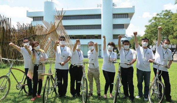 ▲國立臺灣工藝研究發展中心主任張仁吉帶領工藝文化休閒產業跨域聯盟一起騎著腳踏車去旅行。