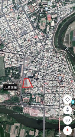 過去雲林作為台糖的重要發展基地,也 讓該企業擁有眾多的土地資源,然而隨 著糖廠的業務發展需求減少,造成土地 也大規模的荒廢。如紅色圈起來的這一 塊地,不是台糖的土地就是與台糖歷史 有牽連的土地,就位於北港糖廠正對 面、省道台19線華南路與民主路交界處。