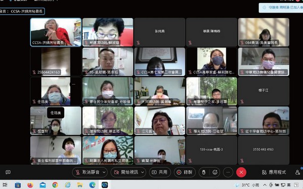 CCSA創會至今已屆20年, 秉持“ 教育愛” 理 念,致力服務全台育幼院、少年中途之 家,期以「關懷失家兒,建構資源服務 網絡,使健全成長與正向發展」為使 命,推動政策與鏈結社會、促動全國兒 少體系的服務內涵與品質效能提升。 4/22(週五)CCSA召開「第七屆第二 次會員大會」,儘管疫情升溫,參與者仍 踴躍,線上有45所機構團體、以及理事、 監事等個人會員參加。CCSA的60所團體 會員,包含全國公立兒少安置機構(衛 生福利部北區、中區、南區兒童之家、 少年之家、雲林教養院、離島單位), 私立育幼院、少年家園等。近年社會遽 變,父母因重症、服刑(毒品居多)、 遺棄、虐待、性侵害...之兒少,必須“非 自願”家外安置於寄養家