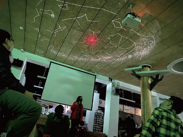 ▲「銀河.螢河」活動,天文解說員江慧玲雨天於室內導覽星空。
