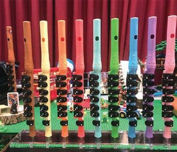 ▲吹笛手謝志偉老師與彩色水晶響笛。