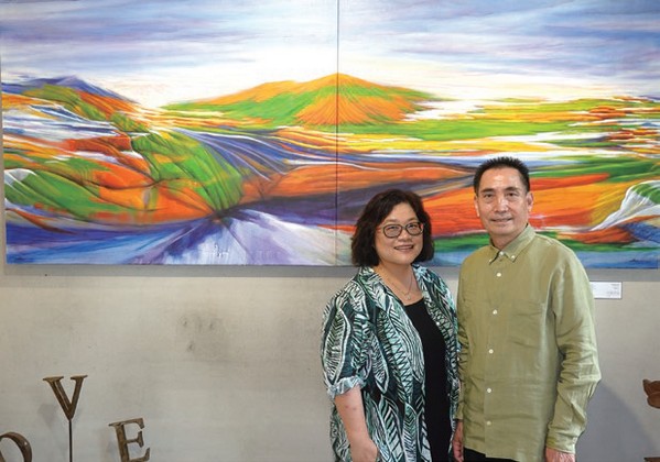 ▲(左起)畫家(珍禾旅行社總經理)許素珍、指導老師林進益。