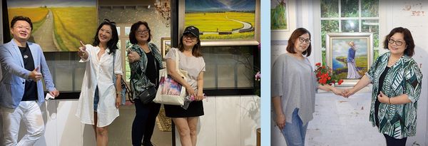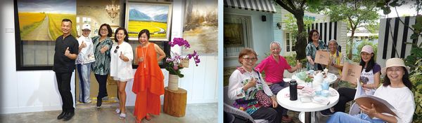 幸福畫室師生聯展於5月假淡水大 屯莊園(蘇菲雅婚紗攝影基地, 也是幸福畫室所在)展出,其中有一 位畫家就是大家熟識的珍禾旅行社(JH Tours)總經理許素珍,她展出7幅畫 作,希望大家看了她參展的作品,更期 待我們旅遊業在「春色漸開」的大地, 讓我們一起「乘風破浪」,走向「康莊 大道」!穿越過「花漾隧道」,兩旁的 「稻浪搖擺」,已經在歡迎我們!抬頭 挺胸看著遠方「湖畔晨曦」,向日葵像 是「搖滾太陽」,充滿著希望和熱情 的心,快要啟動了喔! 繼續 加油喔!Keep fighting & keep positive!