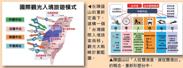 由於熟悉機場的運作、航空公司的經 營思維,以及亞洲觀光客的旅遊走向, 讓陳盛山在切入分流分源時,能成功讓 外籍航空點頭將運能投入中/南台灣, 把過去客源集中於北部的缺口進行補 位。
