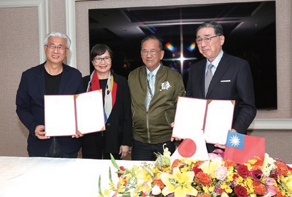 ▲台中市觀旅局與日本真中祭文化財團簽訂「促進慶典交流合作備忘錄」,顯示踩舞祭將在雙邊的持續努力下,年年開啟更璀璨的亮眼表現。(左起)時任台中市觀光旅遊局局長陳盛山、台灣觀光協會會長葉菊蘭、時任台中市副市長林陵三、日本真中祭文化財團理事長岡田邦彥。
