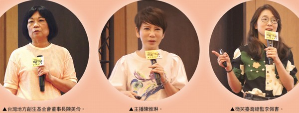 微笑臺灣總監李佩書提到,交通網路 及載具的翻轉,讓整個台灣變動快速且巨 大,台灣地方近年起了非常大的變化,從 快、到慢、到深,下一步則是永續。他指 出,將花蓮各點串在一起是勢在必行,連 結公部門與企業資源,一起把地方創生 這塊餅做大。主播陳雅琳則以新聞節目 強調「台灣每一寸土地都有故事」,台灣 的每一寸土地都值得追尋,也有講不完的 故事。其中體驗經濟、體驗行銷也相當 重要,地方只要有特色,距離再遠都會想 去。