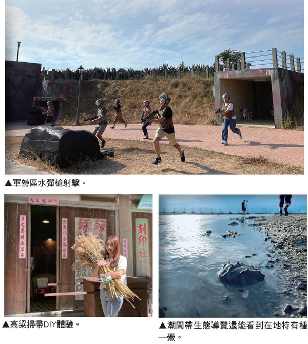 金門縣政府觀光處處長丁健剛表示,「烈嶼鄉觀光產業輔導計 畫」包括華南汽水廠結合鶴山窯的文創故事館、亨氏暢遊的四維 營區水彈體驗、烈嶼高粱掃帚編織的文化體驗、協助開發野生蜂巢蜜與 蜂蜜相關加工品的海霓蜜坊、開發復刻地方特色菜,協助在地料理故事 化的新大同餐飲,以及青年回鄉打造烈嶼第一家咖啡館的沐咖啡等,都 讓烈嶼玩法更加道地與深入。