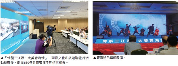 「 情繫三江源.大美青海情」—兩岸 文化和旅遊聯誼行活動7╱25登 場,文化和旅遊部副部長張旭、青海省 人民政府副省長楊逢春、中華全國台灣 同胞聯誼會副會長符之冠出席並致辭, 台灣新黨前主席郁慕明、文化台灣基金 會榮譽董事長洪孟啟作為嘉賓代表致 辭。活動設置西寧、台北兩個分會場, 以「文化傳承和生態發展」為主題,採 取線上與線下、集中與分散相結合的方 式舉辦,來自兩岸的150多名文化、傳 媒、旅遊、藝術等界別嘉賓受邀參加。