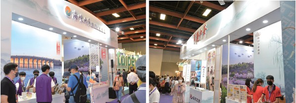 海旅會展區此次以「美麗中華─暢遊 千年運河,樂享非遺之美」為主題,邀 請民眾逛旅展雲遊滔滔運河,在綠水青 山間領略大運河自然之美,在風土人情 中感受大運河人文之美。於此同時,展 區也同步展出「壯美廣西•錦繡八桂」 ─廣西非物質文化遺產展,精選深具廣 西特色的繡球、樂器及織品等精彩展 品,讓參加旅展的民眾提前預覽9/9~ 10/23在佛光山佛陀紀念館盛大展出廣 西非物質文化遺產精品。