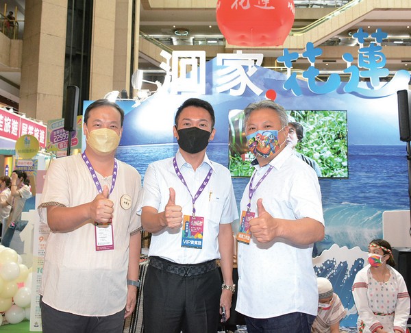 ▲(左起)花蓮縣政府觀光處行銷科科長柯博皙、處長張志 翔、花蓮縣觀光協會理事長陳義豐。