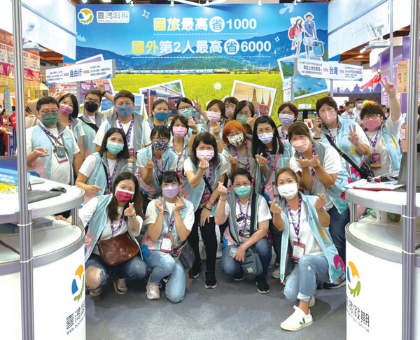 ▲(前排左1起)台北市觀光傳播局局長劉奕霆、台北市旅 行公會理事長駱炫宏、可樂旅遊總經理高月美、台北市副市 長黃珊珊、台北市旅行公會副理事長李清利(右1)與同仁 合影。