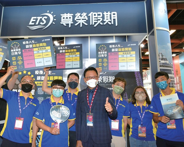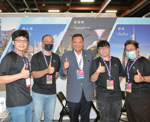 ▲大登旅行社董事長林博宗(中)、鴻大旅行社產品開發 經理翁崧容(左1)。
