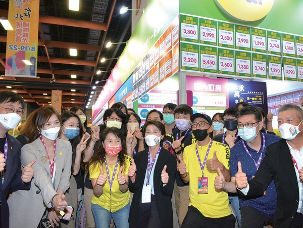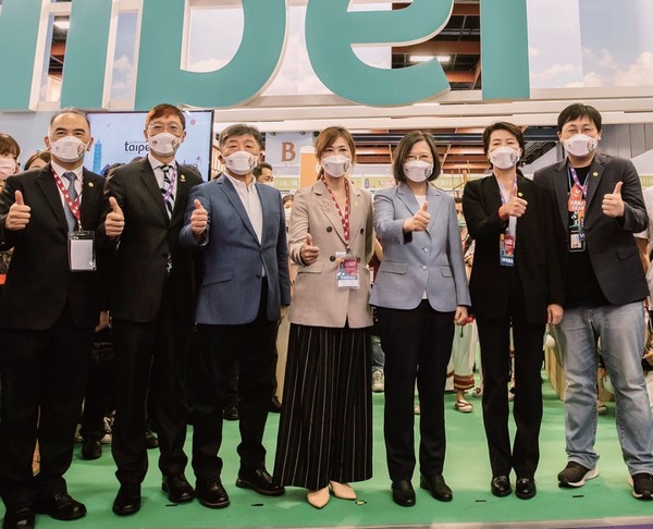 ▲(左4起)台北市旅行公會理事長駱炫宏、蔡英文、台北市 副市長黃珊珊、觀光傳播局局長劉奕霆。