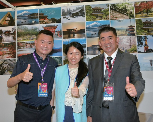 ▲(左起)大都會旅行社董事長林進榮、特助林亭妤、日紳 旅行社董事長詹林家。