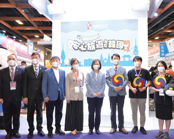 ▲(左4起)台北市旅行公會理事長駱炫宏、蔡英文、韓國 觀光公社台北支社支社長李長儀。