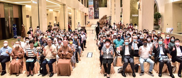▲(左起)社團法人中華翰維文化推廣協會理事長陳春霖、台灣史前文化博物館館長王長華、海峽兩岸旅遊交流協會台北辦事處主任任佳燕、佛光山住持心保和尚、臺北藝術大學教授施國隆、高雄市旅行商業同業公會理事長蔡宗佑。