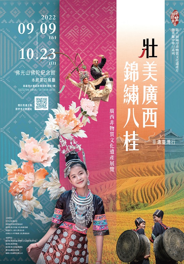 ▲壯美廣西.錦繡八桂 廣西非物質文化遺產展覽於高雄佛光山佛陀紀念館舉辦,展期至10╱23。