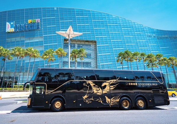 百駿通運的LOGO是駿馬奔騰,創新 號則以獨角獸賦予靈魂使命,全球唯一 的創新號是一部移動式總統套房,除 了有最先進的科技,最安全的裝備,車 內的所有配備也都是精心設計挑選,備 有吧檯紅酒櫃、個人置物櫃、化妝鏡、 液晶電視、歐洲原裝音響、六星級化妝 間,從每一個細節為搭乘者打造最好、 最細緻的環境配備。9╱14正式投入市 場服務,目前訂單排到年底,詢問熱度 相當熱烈,鼎運旅遊集團已著力進行打 造更多同款高端8人座超級豪華頭等艙 遊覽車,以滿足未來市場的需求。