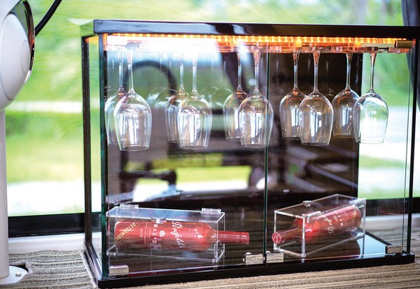 ▲車上另有紅酒與施華洛世奇水晶酒杯
