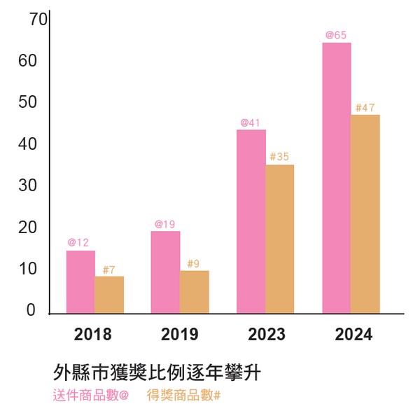 過往中小型、中南部業者參與度較低,關鍵因素在於不知如何策畫、認為得獎機率低,因此品保積極舉辦全台說明會,輔導業者參加評選,無形中也讓參賽同業的企劃能力提升,進而增加參賽意願。據統計,僅在邊境開放後的2023、2024年期間,中南部得獎作品便明顯提升,甚至達到疫情前的8倍之多。